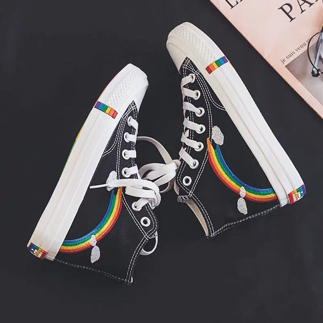 Bộ sản phẩm: Giầy thể thao cao cổ Viền cầu vồng thêu.