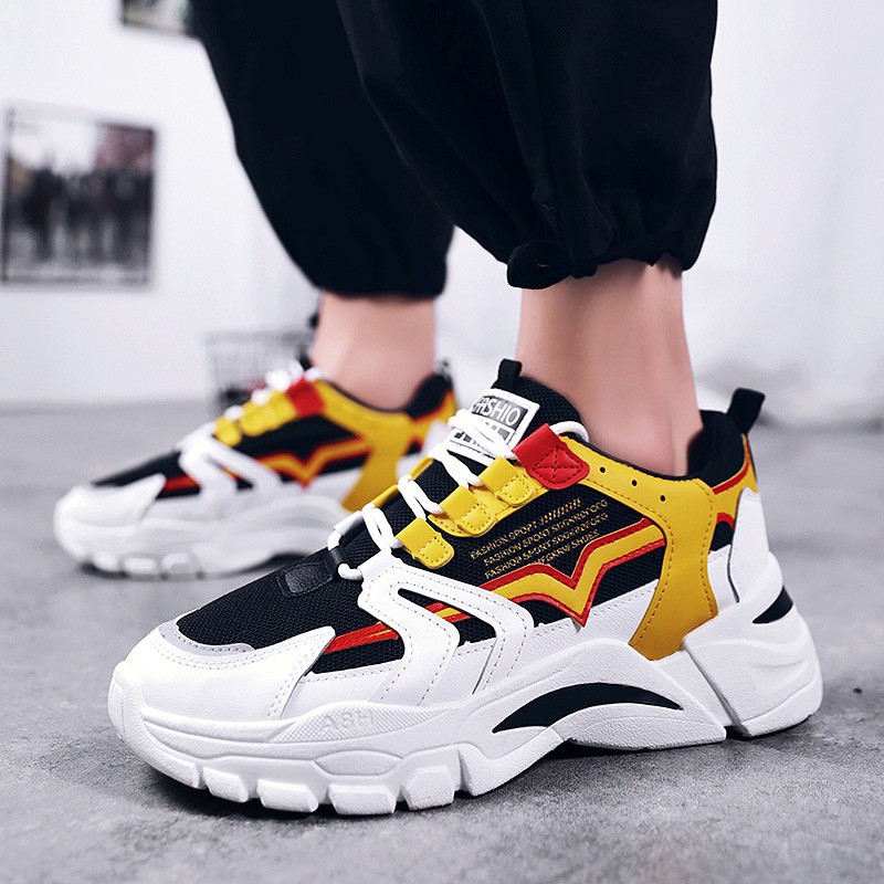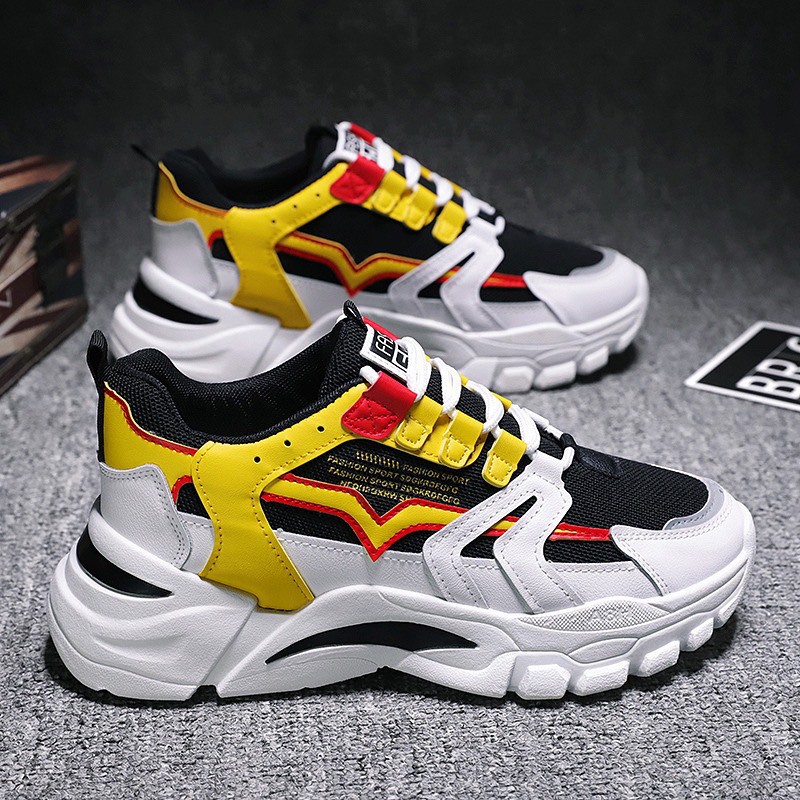 Bộ sản phẩm: Giày Thể Thao, Giày nam Sneaker Vải Thoáng khí – Đen trắng vàng.