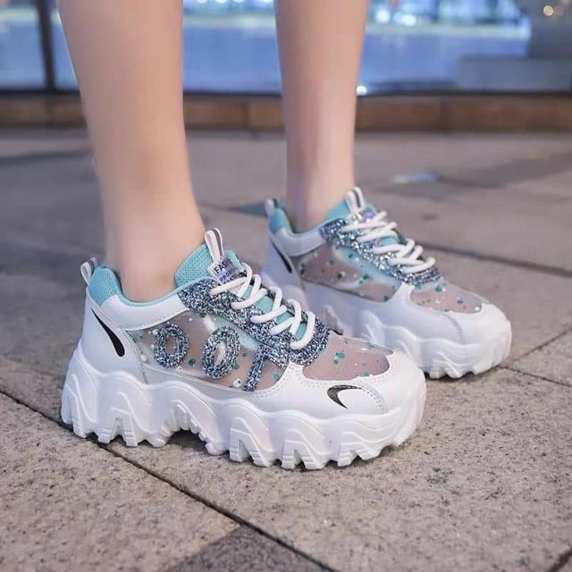 Bộ sản phẩm: Giày thể thao nữ đế độn kim tuyến mới nhất.