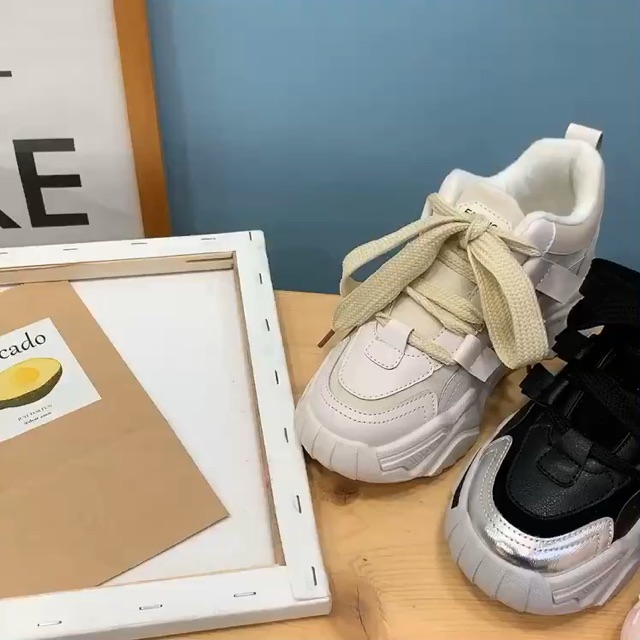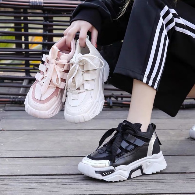 Bộ sản phẩm: Giày thể thao nữ nâng đế dây bản to 3 phối màu siêu đẹp trẻ trung cá tính.