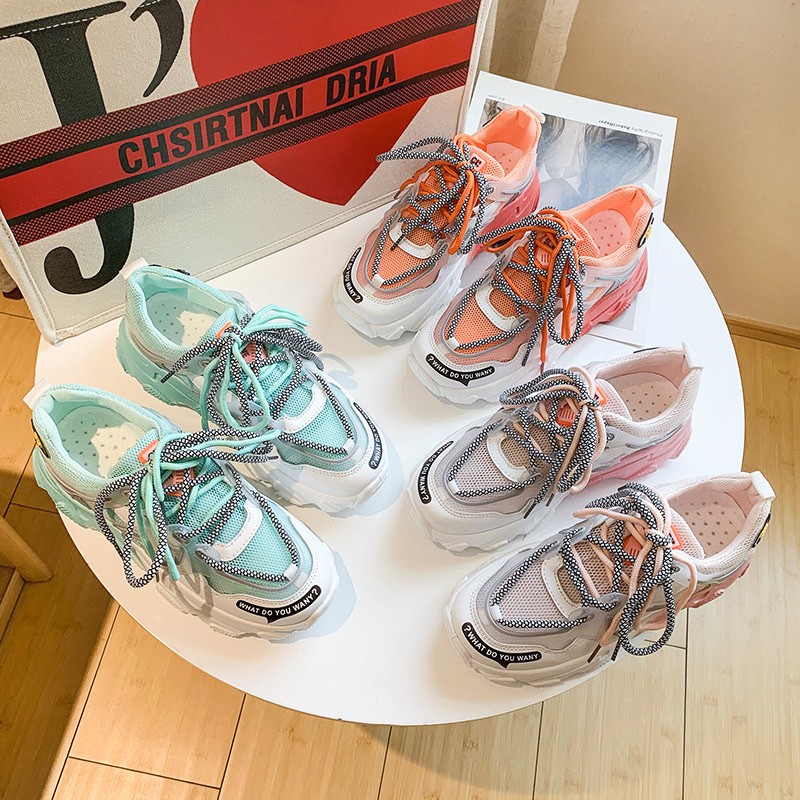Bộ sản phẩm: Giày thể thao nữ phối màu đế lưới.