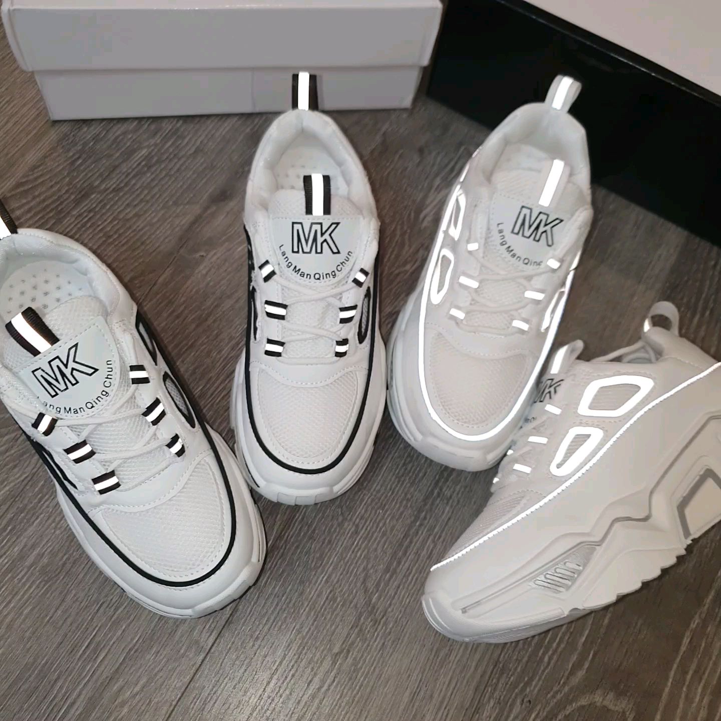 Bộ sản phẩm: Giày thể thao nữ Ulzzang phản quang MK 2 màu đơn giản đen trắng dễ phối đồ đế êm cao 6cm vải mềm hot.