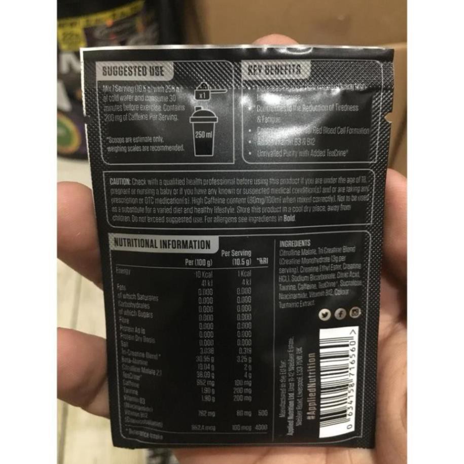 Bộ sản phẩm: Gói Thử Sample Applied Nutrition ABE Pre workout 1 lần dùng(11 Gram) Authentic 100%.