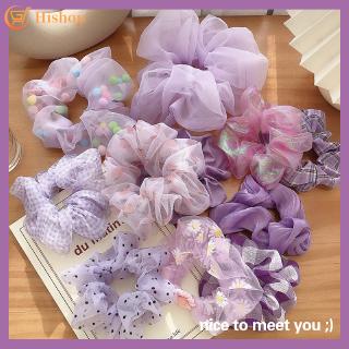 Bộ sản phẩm: Hi Màu Tím Scrunchies Hoa Cúc Bươm Voan Cột Tóc Scrunchie Con Gái Chun Buộc Tóc Phụ Kiện Tóc.