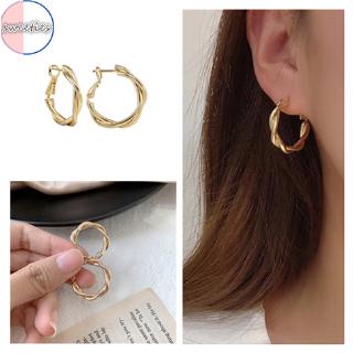 Bộ sản phẩm: Hoa tai kim loại xi mạ vàng thiết kế dáng tròn đơn giản nữ tính.
