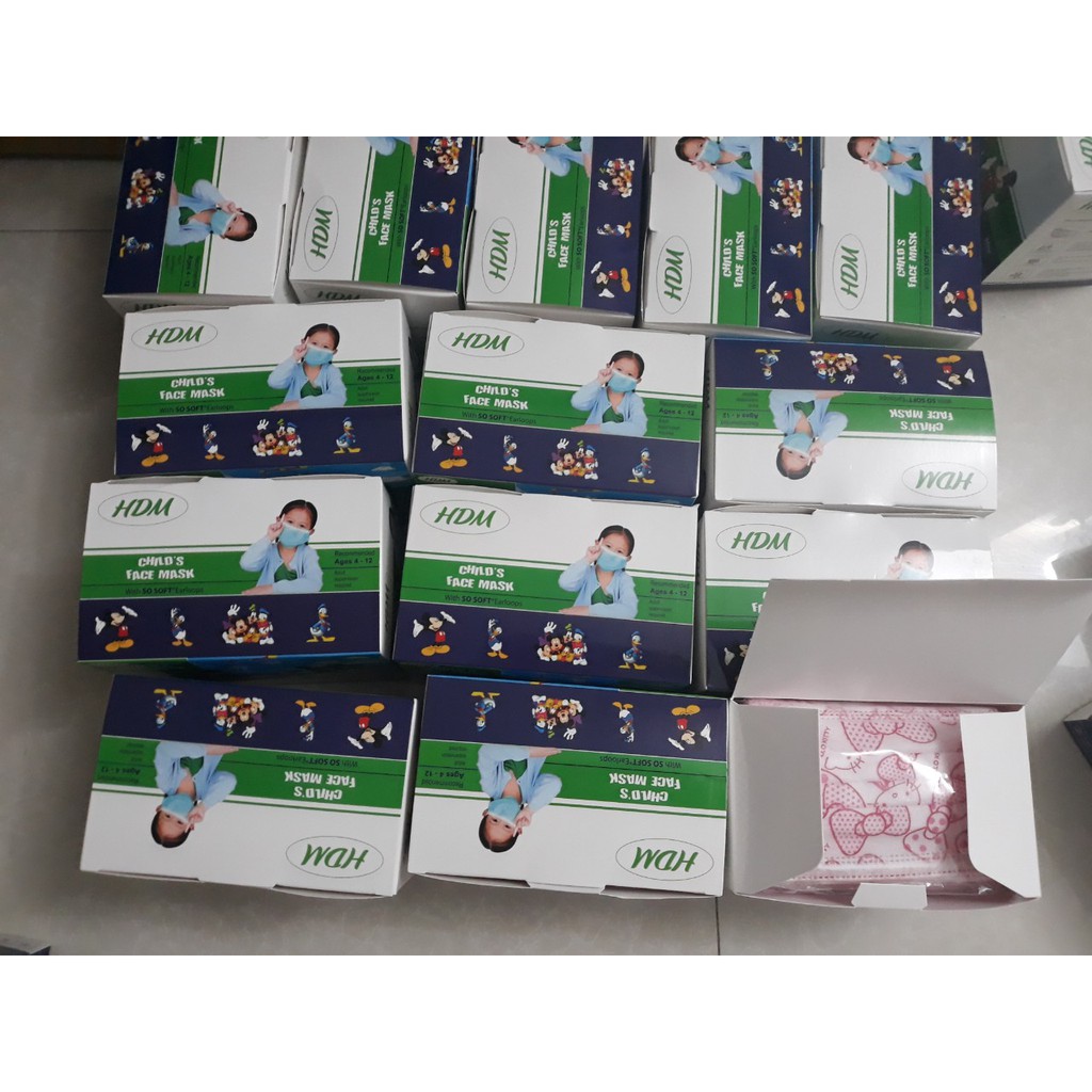 Bộ sản phẩm: Hộp 50 khẩu trang y tế kháng khuẩn 3 lớp mẫu hoạt hình cho bé Hàng Việt Nam Xuất Khẩu.