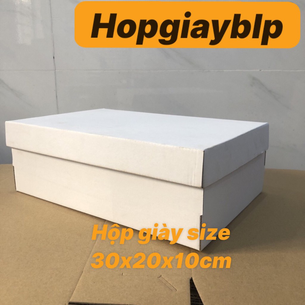 Bộ sản phẩm: HỘP GIÀY SIZE 30X20X10CM GIẤY TRẮNG.