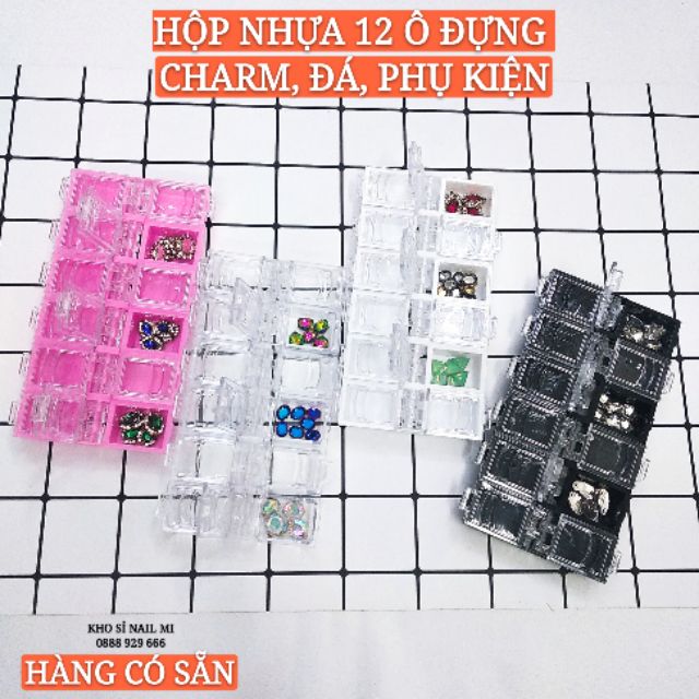Bộ sản phẩm: HỘP NHỰA 12 Ô ĐỰNG ĐÁ, CHARM, PHỤ KIỆN TRANG TRÍ NAIL – 4 MÀU.