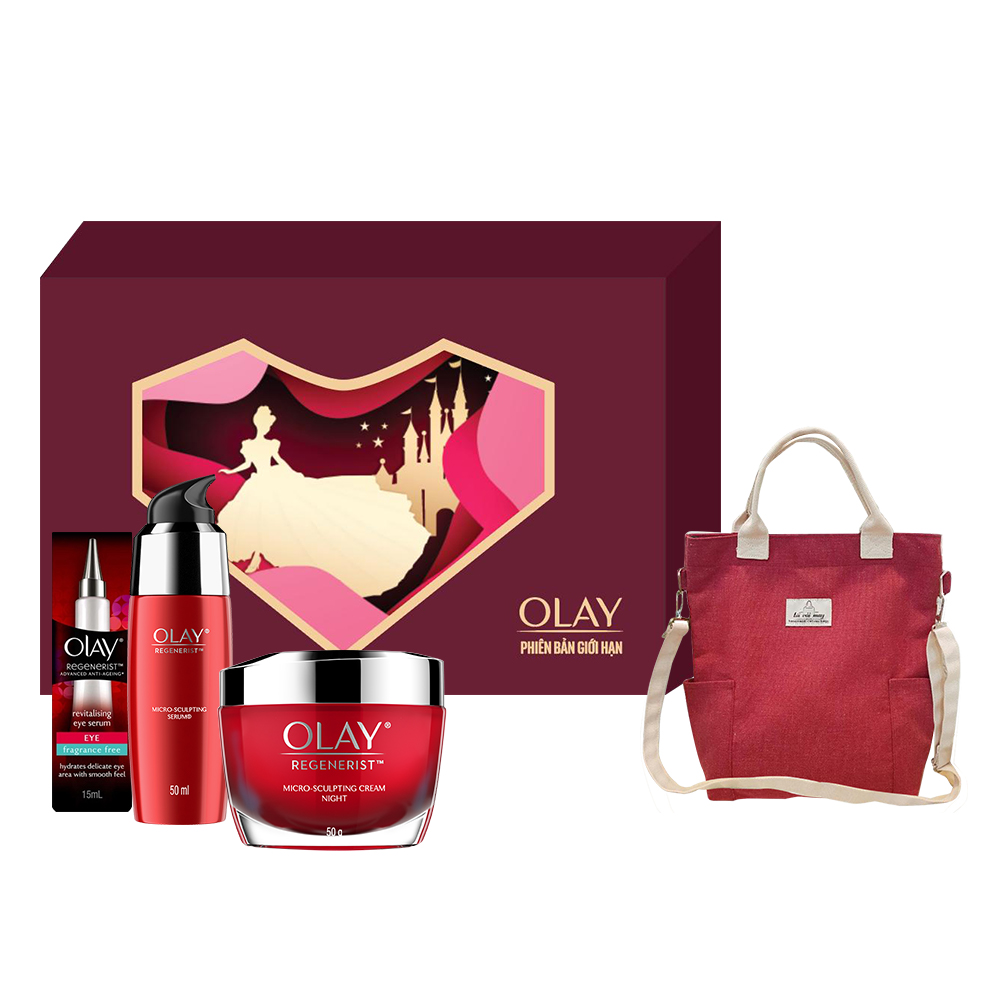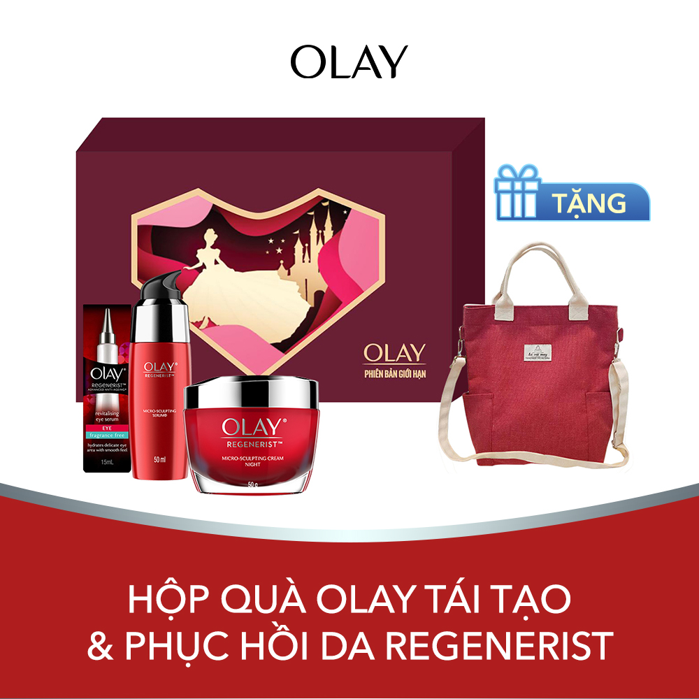 Bộ sản phẩm Hộp Quà Olay Tái Tạo & Phục Hồi Da Regenerist (Tinh Chất Vi Dưỡng vùng Mắt + Tinh Chất Vi Dưỡng Da Tái Tạo Phục Hồi Da Serum + Kem Dưỡng Ban Đêm) + Tặng Túi Tote Canvas Cá Tính Thương hiệu: Olay.