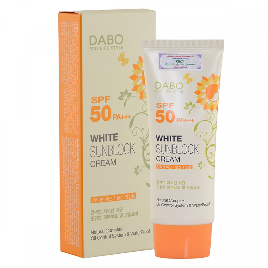 Bộ sản phẩm Kem chống nắng dưỡng da tác dụng 8h Hàn Quốc Dabo White Sunblock Cream SPF 50 PA+++ (70ml) – Hàng Chính Hãng, Thương hiệu Dabo Xuất xứ thương hiệu Hàn Quốc SKU 4423377215321.