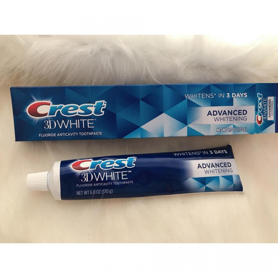 Kem mang công nghệ làm trắng vượt trội nhất của Mỹ sẽ giúp răng bạn cải thiện độ trắng của răng chỉ trong 3 ngày. Ngăn ngừa vết ố, bẩn trên răng bạn trong 12 giờ tiếp theo. Kem đánh răng với Fluoride an toàn, giúp bạn ngăn ngừa sâu răng Crest, một nhãn hàng của P&G, nổi tiếng về các sản phẩm chăm sóc răng như kem đánh răng, dán trắng răng, nước súc miệng . Crest là hãng tiên phong ứng dụng florua vào kem đánh răng và được Hiệp hội nha khoa Hoa Kỳ chấp nhận. Crest White Advanced Whitening là tuýp kem sử dụng công nghệ làm trắng răng mới nhất, có khả năng làm trắng răng chỉ trong vòng 3 ngày. Ngoài ra, Florua trong sản phẩm còn giúp ngăn ngừa sâu răng và bảo vệ men răng hiệu quả. Crest White Advanced Whitening có màu trắng, chứa nhiều tinh thể lấp lánh. Kem tạo bọt rất tốt. Kem tạo nhiệt nhẹ vào răng ngay khi bạn đánh răng, đó cũng là lúc kem thực hiện “đánh bóng” và loại bỏ lớp ố vàng trên răng bạn. Kem mang mùi hương bạc hà thơm mát và có vị cay nhẹ. Sử dụng Bôi kem đánh răng lên mặt lông của bàn chải một lượng vừa đủ và chải nhẹ nhàng lên răng. Đánh răng xong súc miệng lại bằng nước sạch. Nên đánh răng sau khi ăn xong, tối trước khi đi ngủ và sáng sau khi thức dậy, ít nhất hai lần mỗi ngày. Để tránh làm tổn thương men răng, hãy chọn bàn chải tốt, sáu tháng thay một lần để đảm bảo vệ sinh lông bàn chải, tránh nhiễm khuẩn. Một chất lượng đến từ Mỹ với hương thơm tươi mát kéo dài lâu, bạn có thể nhanh chóng nhận thấy hiệu quả trắng răng mà kem mang lại. Mua ngay ! * Giá sản phẩm trên Tiki đã bao gồm thuế theo luật hiện hành. Tuy nhiên tuỳ vào từng loại sản phẩm hoặc phương thức, địa chỉ giao hàng mà có thể phát sinh thêm chi phí khác như phí vận chuyển, phụ phí hàng cồng kềnh,.