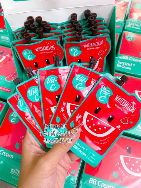 Kem nền BB cream DƯA HẤU chống nắng ☀️☀️☀️☀️☀️ Kem lót BB Sasimi Maekup và chống nắng SPF45++ #DưaHấu thích hợp với mọi loại da, đặc biệt học sinh trung học có thể sử dụng được, từ 14-16 tuổi trở lên BB Cream là một công thức nhẹ, mịn, che giấu khuyết điểm. Kem lót có mùi hương ngọt ngào, dễ lan rộng và thấm vào da. Cung cấp ẩm và vitamin e cho da Không làm tắc nghẽn lỗ chân lông Sẵn sàng kiểm soát nhờn suốt cả ngày Thích hợp trang điểm nhẹ nhàng cho đi học và đi làm thì có thể đánh 1 lớp nền kem BB cream lên da , sau đó thoa chút son môi và kẻ mắt thì các bạn có ngay một khuôn mặt xinh tươi cho cả ngày dài Xuất xứ : Thái Lan Hsd 5 năm