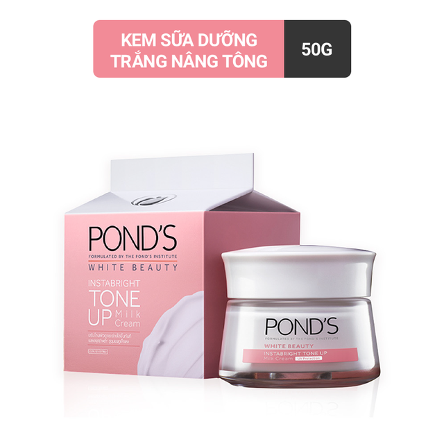 Xu hướng chăm sóc da mới nhất từ Hàn Quốc , lần đầu tiên Pond’s giới thiệu một loại kem sữa dưỡng trắng nâng tông Pond’s Tone Up Milk Cream mới, cho làn da được nâng tông nhanh chóng, tự tin trắng mịn trong chớp mắt. Đồng thời với công thức chiết xuất protein từ sữa sẽ giúp liên tục nuôi dưỡng da suốt ngày dài. Hướng dẫn sử dụng: – Rửa sạch da mặt và cổ, rồi thoa đều một lượng vừa đủ sản phẩm. – Nhẹ nhàng mát-xa (vùng da mặt và cổ), tiếp tục thoa đều cho đến khi đạt đến màu da trắng và sáng mịn như mong muốn. – Để đạt hiệu quả tối ưu, sử dụng mỗi ngày cùng sữa rửa mặt Pond’s White Beauty. Lưu ý: Để xa tầm tay trẻ em, không sử dụng cho trẻ em dưới 3 tuổi. Không tiếp xúc quá lâu với ánh nắng mặt trời ngay cả khi có sử dụng kem chống nắng. Nếu bị kích ứng, ngưng sử dụng và gặp bác sĩ tư vấn Xuất xứ: Thái Lan HSD: 36 tháng kể từ NSX