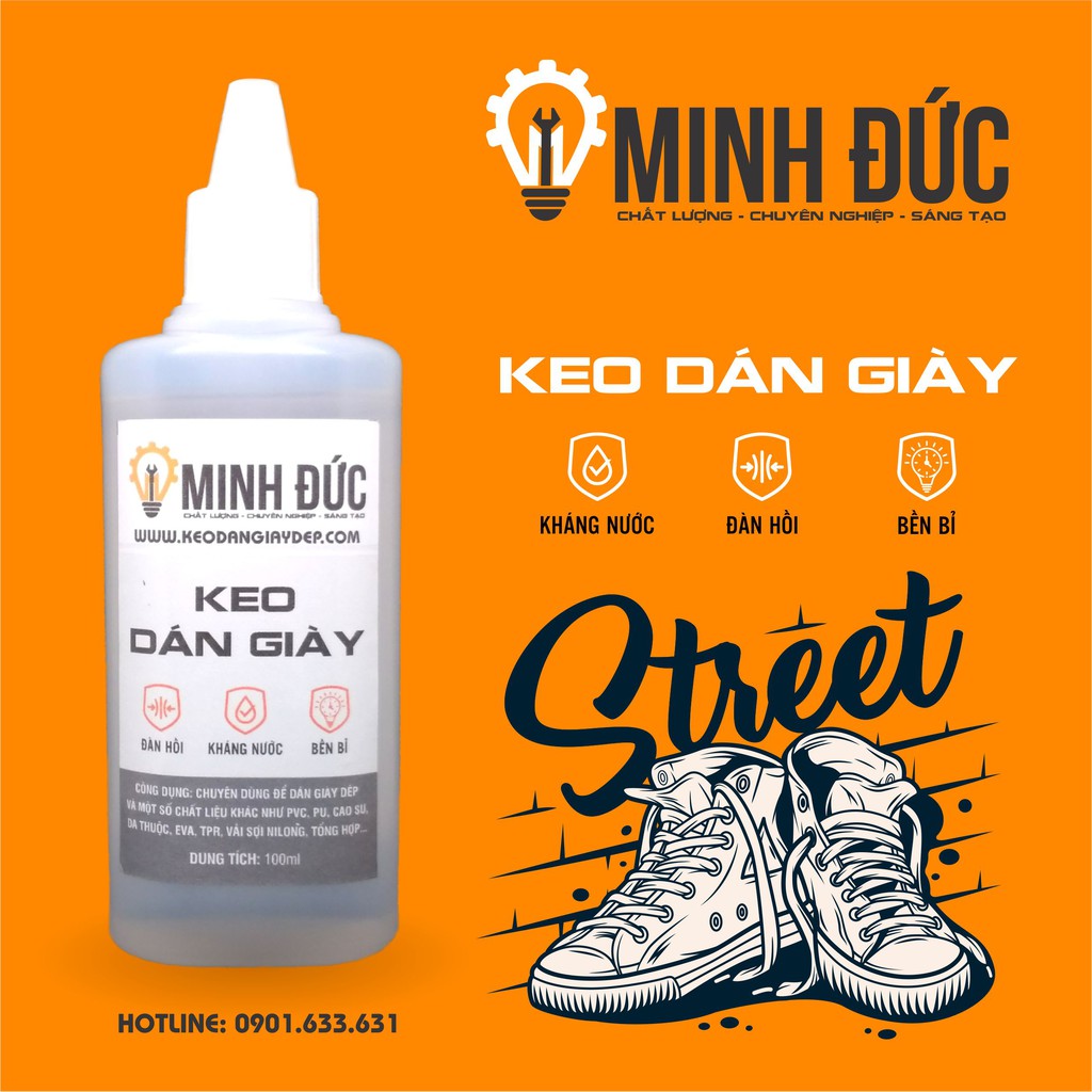 Keo dán giày dép chuyên dụng Minh Đức Đôi giày yêu quý luôn là người bạn không thể thiếu của bất kì ai trong chúng ta. Dù bạn làm gì ở đâu, chắc chắn giày dép luôn là điều cần thiết. Nhìn chung cường độ sử dụng giày dép của chúng ta rất cao và môi trường bên ngoài thì thay đổi nắng, mưa, ẩm ướt, bùn đất… Khiến việc bong tróc chiếc giày thân yêu là việc rất hay sảy ra. Vì vậy việc có sẵn 1 lọ keo dán giày chuyên dụng trong nhà là việc rất cần thiết. Hãy nhớ lại trước đây bạn đã khó khăn như thế nào khi dán lại đôi giày thân yêu của mình Chúng tôi cũng như bạn, đã từng làm hỏng nhiều chiếc giày của mình. Đôi khi tiếc đứt ruột vì mình làm hỏng 1 đôi giày đắt tiền. Mình đã dùng đủ mọi loại keo: keo con chó , keo 502, và các loại keo khác bán trên thị trường… Nhưng tất cả đều không như ý. Tác hại của việc dán giày không đúng keo: Chất keo con chó màu vàng gây mất thẩm mỹ sài một vài bữa lại bong ngay và để lại phần keo chai cứng, keo 502 cứng và phá hủy bề mặt nhựa, làm rách lớp da hoặc hỏng phần vải không thể sửa chữa. Các loại keo dán giày khác được quảng cáo là keo dán giày chuyên dụng đôi khi dán có kết dính và dẻo nhưng lại làm dày cộm phần mối nối. Ở những đôi giày mỏng cần thẩm mỹ lại làm cấn lộm cộm. Bạn có bế tắc khi tìm kiếm 1 loại keo dán giày dép chuyên dụng, quảng cáo thường mang bạn đến với các loại keo tương tự keo 502, bạn thật sự mất niềm tin và đắn đo khi phải bỏ tiền ra để mua bất kỳ loại keo nào trên thị trường. Chúng tôi ở đây để giúp đỡ bạn!!! Keo dán giày dép Minh Đức là loại keo chuyên dụng tốt nhất dùng trong ngành giày dép, kết hợp với tẩy keo cũ sẽ giúp bạn dán lại đôi giày như mới. Chất keo khi khô mỏng và đẹp đến nỗi bạn không thể phân biệt trước khi quét keo và sau khi quét keo. Phần keo trong suốt bao bọc giúp giữ nguyên thẩm mỹ cho đôi giày, bạn cũng không cần lo lắng nếu bạn không phải kiểu người tỉ mỉ hay làm lem phần keo qua các vùng khác. Keo mỏng và trong suốt nên sẽ không gây ảnh hưởng khi lem ra bên ngoài. Tham khảo: Dung dịch tẩy keo Minh Đức, Combo keo dán + dung dịch tẩy keo giá ưu đãi Màu sắc của Keo dán giày dép chuyên dụng Minh Đức Keo dán giày dép chuyên dụng Minh Đức Có lớp keo trong mỏng rất đẹp Keo dán giày dép chuyên dụng Minh Đức: Thẩm mỹ (Keo trong, mỏng không cộm Bền bỉ (nếu dán đúng cách, độ bền lên đến 2 năm) Kháng nước. Thời gian dán nhanh. Tiết kiệm (chai 100ml vòi nhỏ ít bay hơi, dùng được nhiều lần) Một sản phẩm không thể thiếu cho mọi gia đình giúp bạn tiết kiệm tiền bạc, tiết kiệm thời gian giữ cho giày dép luôn trong tình trạng tốt nhất để không bỏ lỡ mọi cơ hội trong cuộc sống. Mua hàng ngay với giá chỉ tương đương 1 bát phở có thể giúp bạn tự tin xử lý đôi giày khi gặp sự cố. Hướng dẫn dán giày có in trên chai. Xem video hướng dẫn: https://www.youtube.com/watch?v=H-v-1X3vPOY Mọi vấn đề thắc mắc và mua hàng sỉ lẻ xin liên hệ: Điện thoại: 0901.633.631(ĐT/Zalo)