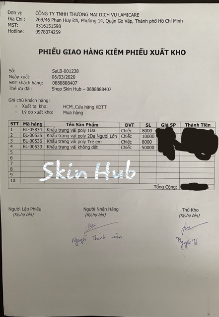 Với tiêu chí giá bao rẻ, chất lượng tuyệt đỉnh, kiểu dáng mới nhất, mẫu mã được ưa chuộng nhất hiện nay, cùng với hệ thống mạng lưới vận chuyển chuyên nghiệp toàn quốc, bộ sản phẩm Khẩu trang 3D vải không dệt 2 lớp – Skin Hub được giao nhanh chóng, đảm bảo nguyên vẹn khi đến tay người tiêu dùng. Sau đây là các voucher giảm giá áp dụng cho quý khách khi mua sắm tại shop.