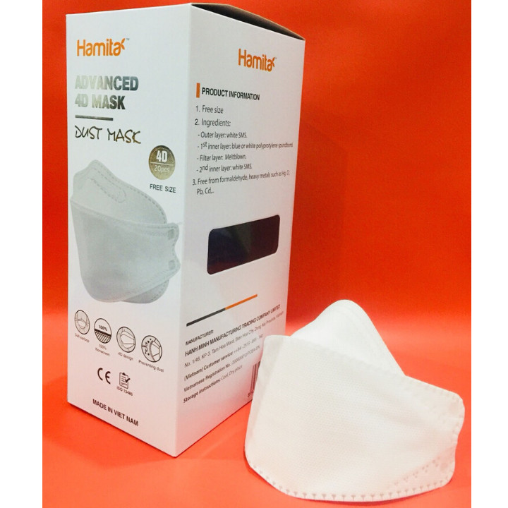 Khả năng bảo vệ chống nhiễm khuẩn 99.60% Không chứa hàm lượng fooc – môn, kim loại nặng như Hg, Cr6+, Pb, Cd, .. theo TCVN8389-1:2010 và QCVN01:2017/BCT Sản phẩm chuyên xuất khẩu qua Mỹ và Châu Âu (ISO13485, Dấu CE và chứng nhận FDA) Sản phẩm được ủy quyền bởi cục quản lý thực phẩm và dược phẩm hoa kỳ (FDA) sử dụng làm dụng cụ bảo hộ lao động trong môi trường công cộng giúp làm chậm sự lây lan Covid19 trong đại dịch Kích thước: 83*203mm Màu sắc: Xanh hoặc Trắng Thiết kế 4D ôm khít khuôn mặt 4 lớp lọc: 1 lớp vải SMS, 1 lớp vải không dệt, 1 lớp giấy kháng khuẩn MELTBLOWN, 1 lớp vải kháng khuẩn SMS Thương hiệu Hamita đã được bảo hộ Được phép giặt tối đa 5 lần Được phép giặt tối đa 5 lần (Ngâm nước nóng, vẩy ráo nước và phơi khô) Sản phẩm đang xuất khẩu sang châu Âu, dấu CE Cục phòng chống dịch bệnh hoa kỳ, cục quản lý thực phẩm và dược phẩm hoa kỳ (FDA) cấp phép nhập khẩu thị trường hoa kỳ Sản xuất trong điều kiện đạt chuẩn ISO13485 Đối tác trong nước là các bệnh viện lớn: BV từ dũ, BV hạnh phúc, BV columbia asia, BV đại học y dược, BV hoàn mỹ, Thiết kế 4D thông min, không lem son môi, thông thoáng Ngâm nước ấm trên 75oC để làm sạch, chỉ nên giặt tối đa 5 lần để đảm bảo hiệu suất lọc 2 màu ngẫu nhiên Thiết kế 4 lớp: – 1 lớp vải SMS, – 1 lớp vải không dệt, – 1 lớp giấy kháng khuẩn MELTBLOWN, – 1 lớp vải kháng khuẩn SMS .