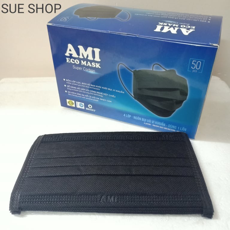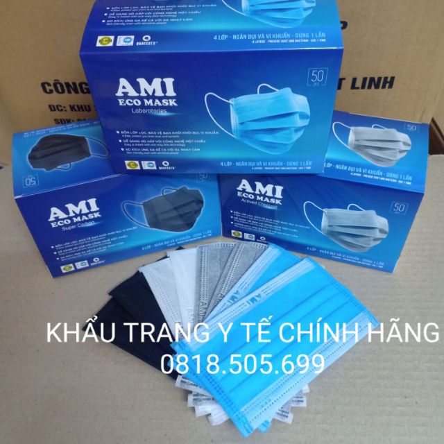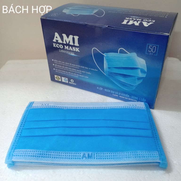 Bộ sản phẩm: Khẩu trang kháng khuẩn Ami 4 lớp chuẩn hãng (Hộp 50 cái).