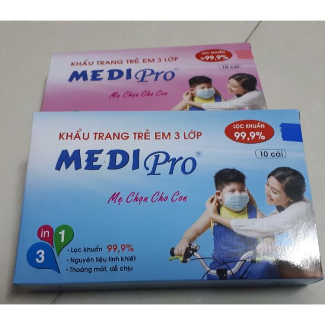 Khẩu trang trẻ em Medipro 3 lớp – 10 cái là sản phẩm đang thịnh hành nhất trên thị trường trong nước và quốc tế. Bộ sản phẩm có giá chỉ ₫25.000 đã được bán ra hơn 823 đi kèm với 21 lượt yêu thích, cùng với đó là 86 lượt review, đánh giá, nhận xét về sản phẩm. Mô tả chi tiết bộ sản phẩm, quý khách vui lòng xem sau đây.