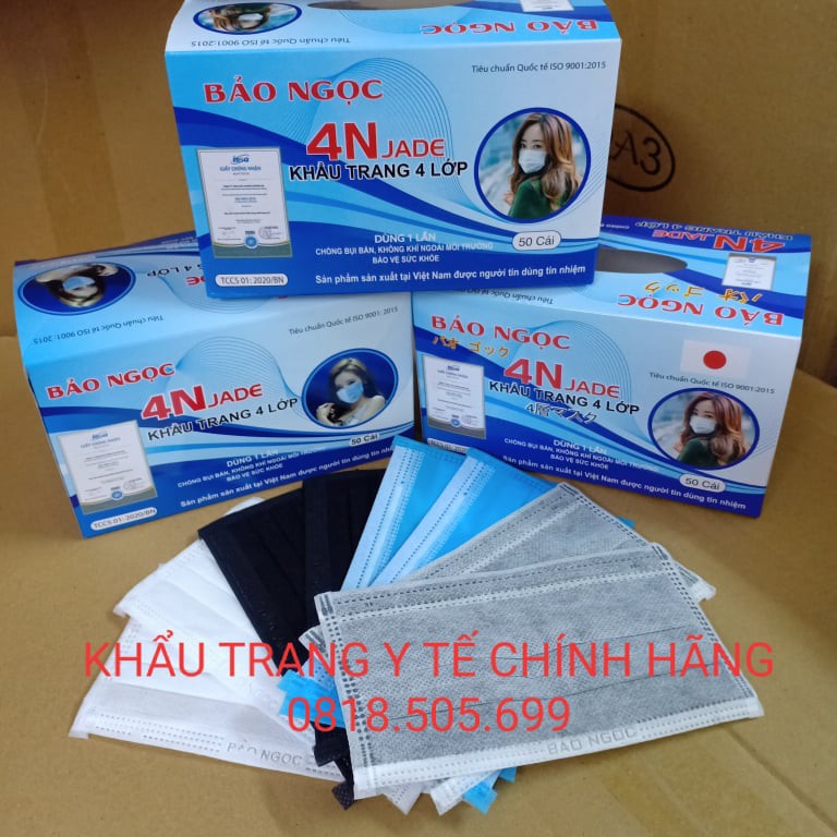 KHẨU TRANG Y TẾ 4 LỚP BẢO NGỌC HÀNG CHUẨN CÔNG TY (HỘP 50 CÁI) – CAM KẾT HÀNG CHÍNH HÃNG, GIÁ RẺ NHẤT THỊ TRƯỜNG! – Hàng có đầy đủ giấy tờ kiểm nghiệm chất lượng, xuất hóa đơn VAT theo yêu cầu, khách hàng yên tâm tuyệt đối khi mua ạ. – Khẩu trang có in tên hiệu logo dập nổi trên từng cái khẩu trang. – Khẩu trang Bảo Ngọc có tác dụng kháng khuẩn, kháng nước, ngăn giọt bắn đường hô hấp hiệu quả. Dây thun đeo tai co giãn mềm mại dễ chịu. – Quy cách đóng gói: 1 hộp 50 cái. Tư vấn mua hàng: 0818.505.699 Khách mua sỉ vui lòng inbox để có giá tốt nhất!