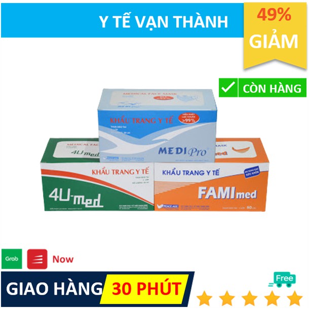 Bộ sản phẩm: Khẩu Trang Y Tế: Medi Pro, 4U, FAMI Med (Hộp 50 cái) – Hàng Cty Thời Thanh Bình, Chuẩn Y Tế – P0006.