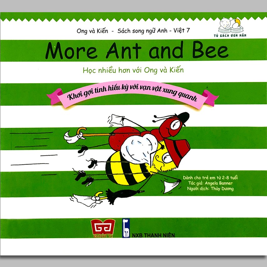 Ong và Kiến 7 – Khơi gợi tính hiếu kỳ với vạn vật xung quanh Ong và Kiến tình cờ gặp nhau và trở thành một đôi bạn thân thiết, gắn bó. Thông qua những câu chuyện hết sức thú vị và gần gũi của hai bạn nhỏ này, các em bé sẽ tiếp thu được những kiến thức và những bài học rất chân thực và bổ ích! Trong các cuốn sách trong bộ sách này có xuất hiện những “chữ nổi bật” màu đen và màu đỏ. Khi cha mẹ đọc chữ màu đen, các em bé có thể tham gia vào câu chuyện bằng cách đọc lên những chữ màu đỏ, qua đó vừa có thể giúp câu chuyện trở nên hấp dẫn, lại vừa giúp các bạn nhỏ dễ dàng ghi nhớ bài học hơn. Bên cạnh đó, các cuốn sách còn bổ sung các từ vựng tiếng Anh đơn giản, giúp các em làm quen và đến với tiếng Anh một cách tự nhiên nhất. Cuốn sách “Khơi gợi tính hiếu kỳ với vạn vật xung quanh” : Vào một ngày nóng bức, Ong nói rằng châu Á rất nóng, nóng hơn nơi bạn ấy và Kiến đang sống rất nhiều. Nghe vậy Kiến rất muốn đến châu Á. Thế là cả hai bạn ấy đã cùng nhau vượt biển trên một con thuyền lớn và gặp gỡ bao điều thú vị… ================== Công ty phát hành Đinh Tị Tác giả Angela Banner Nhà xuất bản Nhà Xuất Bản Thanh Niên Ngày xuất bản 01-2017 Kích thước 13 x 14 cm Loại bìa Bìa mềm Số trang 112
