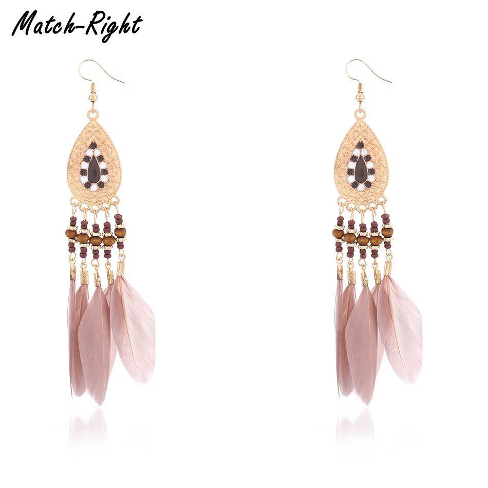 Bộ sản phẩm: Khuyên tai dài dạng tua rua phối lông vũ thanh lịch.