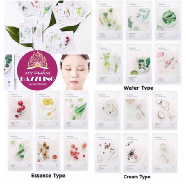 Xuất xứ: Hàn Quốc Thương hiệu: Innisfree Dung tích: 20ml/1 gói Hiện tại có 1 số vị shop về mẫu mới nhất sản xuất năm 2019 là phiên bản EX vỏ bóng, các bạn kéo ảnh sang trái xem thêm hình mẫu mới nhé! Shop sẽ giao mẫu mới hoặc mẫu cũ tuỳ thuộc vào đợt hàng về, các bạn vui lòng không chọn mẫu nhé! Là phiên bản mới được nâng cấp từ dòng cũ. Với chất liệu mặt nạ có nguồn gốc 100% cellulose lên men từ cây bạch đàn, phiên bản mới này đạt được khả năng chống rách tốt hơn, đồng thời mỏng hơn và bám sát vào da khi sử dụng, tăng cường hiệu quả thẩm thấu của các dưỡng chất. Được sản xuất theo phương pháp ép lạnh, nghĩa là các dưỡng chất trong nguyên liệu sẽ được ép và chiết ra từng lượng rất nhỏ theo nhiệt độ giảm dần một cách từ từ. Bằng cách này, các dưỡng chất thu được sẽ ở dạng nguyên chất và tinh tuý nhất, các thành phần không cần thiết thì được loại bỏ. Gồm 18 vị được chia thành 3 nhóm: ️ ️Dạng nước (phù hợp với da dầu, da hỗn hợp thiên dầu): Bamboo (Tre): cung cấp nước và làm mát da nhanh chóng, xoa dịu làn da nhạy cảm dễ bị kích ứng, mẩn đỏ. Green Tea (Trà xanh): dưỡng ẩm nhẹ nhàng, đồng thời có khả năng kháng khuẩn giúp ngăn ngừa mụn cho làn da khỏe mạnh. Tea Tree (Tràm trà): đặc tính kháng viêm kháng khuẩn cao, giúp kiểm soát bã nhờn, làm sạch da và trị mụn hiệu quả. Lime (Chanh): giàu vitamin C nuôi dưỡng làn da tươi sáng. Rose (Hoa hồng): cung cấp độ ẩm cho da mịn màng và dưỡng sáng da. Broccoli (Bông cải xanh): chứa nhiều chất chống oxy hóa, tăng cường sức đề kháng và hỗ trợ thải độc cho da, nuôi dưỡng da khỏe mạnh. ️ ️Dạng tinh chất (phù hợp với mọi loại da): Cucumber (Dưa leo): dưỡng ẩm và cấp nước, mang lại sức sống cho làn da. Aloe (Nha đam/Lô hội): làm dịu da mụn, da nhạy cảm, cấp nước và dưỡng ẩm cho làn da đang mệt mỏi. Manuka Honey (Mật ong): giàu chất dinh dưỡng, cung cấp độ ẩm cho làn da khô, tăng cường độ đàn hồi và căng bóng. Pomegranate (Lựu): cải thiện và ngăn ngừa quá trình lão hóa, đồng thời nuôi dưỡng da mềm mại và căng mịn. Fig (Vả tây/Sung): giàu vitamin và chất chống oxy hóa, cung cấp độ ẩm và dưỡng da tươi trẻ, săn chắc. Tomato (Cà chua): dưỡng ẩm và chống lão hóa, mang lại làn da trẻ trung, căng mọng như trái cà chua chín đỏ. ️ ️Dạng kem (phù hợp với da khô, da hỗn hợp thiên khô): Shea Butter (Bơ hạt mỡ): dưỡng ẩm sâu cho làn da khô. Acai Berry (Nho đen): giàu chất chống oxy hóa, ngăn ngừa quá trình lão hóa và nguy cơ ung thư da, dưỡng da đàn hồi, săn chắc. Rice (Gạo): giàu vitamin B3, cung cấp độ ẩm và dưỡng sáng da. Coconut (Dừa): cung cấp và duy trì độ ẩm cho da hiệu quả. Ginseng (Nhân sâm): giàu dưỡng chất quý, giúp ngăn ngừa hình thành nếp nhăn và hỗ trợ cải thiện các dấu hiệu lão hóa. Oatmeal (Yến mạch): bổ sung độ ẩm, mang lại làn da ẩm mượt và mịn màng, đồng thời dưỡng trắng sáng da. #Mặt_nạ #Innisfree #mặtnạdưỡngda #mặtnạgiấy #mặtnạinnisfree ——————— Mỹ phẩm Dazzling ⛔ Shopee.vn/myphamdazzling98 ☎ Hotline: 0975 86 96 99 ⛔CAM KẾT HÀNG CHÍNH HÃNG & CÓ SẴN