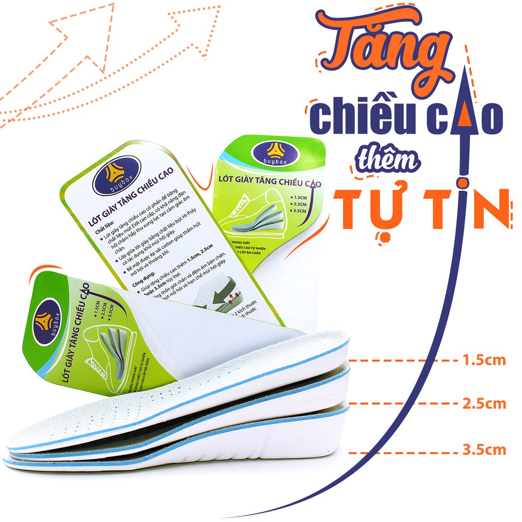 Lót giày tăng chiều cao nam cao cấp êm chân, thoáng khí và khử mùi – buybox – BBPK15 VÌ SAO PHẢI CẦN TĂNG CHIỀU CAO??? ✔ Tăng chiều cao để vóc dáng đẹp hơn ✔ Tăng chiều cao để dáng đi thêm kiêu hãnh ✔ Tăng chiều cao để thêm tự tin ✔ Tăng chiều cao để không bị chê lùn ✔ Tăng chiều cao đơn giản là vì thích -> Tóm lại lót giày tăng chiều cao buybox sẽ giúp bạn tăng đến 3.5cm một cách tự nhiên và cực Đơn giản CÔNG DỤNG NỔI BẬT ✔ Lót giày độn đế có 3 lựa chọn tăng chiều cao 1.5cm, 2.5cm, 3.5cm và 2 kích thước nam nữ riêng ✔ Sản phẩm có thể giặt sạch bằng xà phòng nhẹ và tái sử dụng nhiều lần, dễ tháo lấp để dùng cho nhiều đôi giày khác nhau ✔ Giày đi lâu ngày, phần lót giày bị lún, lót vào đi êm chân hơn, thoải mái. ✔ Sản phẩm có cấu tạo 3 lớp: bề mặt vải lưới cotton thoáng khí, bọt Hi-Poly khử mùi và đế EVA đàn hồi chống lún ✔ Mặt dưới miếng lót được kẻ sẵn size, dùng kéo cắt theo các đường cong này để có được kích thước cần sử dụng. ✔ Lót giày độn đế sử dụng được cho nhiều loại giày cổ cao như: giày sneaker thể thao, giày tây, giày mọi, giày boot, …. NGỮ CẢNH SỬ DỤNG Tăng chiều cao lén không bị phát hiện Nâng đỡ gang bàn chân đem đến cảm giác êm chân Lót giày độn đế dành cho người bị đau thốn gót do đế giày cứng và miếng lót của giày quá mỏng Lót giày dành cho người bị chân cao chân thấp cải thiện dáng đi Giữ cho bàn chân không bị ẩm ướt và giảm mùi hôi giày Lót êm để đi bộ được lâu, thoải mái THÔNG TIN SẢN PHẨM Quy cách: 1 cặp = 2miếng, đủ dùng cho 1 đôi giày Chất liệu: đế lót bằng EVA, lớp giữa là bọt Hi-Poly và bề mặt vải lưới cotton Sản phẩm có 2 loại kích thước: dùng cho giày nữ size từ: 35 – 36 – 37 – 38 – 39 – 40 và dùng cho giày nam size từ: 41 – 42 – 43 – 44 – 45. Thiết kế: lót có phần đúp mũi nhẹ 0.5cm và lượn cao dần về phía sau gót, bề mặt lót trũng nhẹ ở giữa và gót sau giúp ôm vào bàn chân chống mỏi bàn chân. Màu sắc: XÁM HƯỚNG DẪN SỬ DỤNG 1. Vệ sinh bụi bẩn trong lòng giày, lau khô giày 2. Dùng kéo cắt lót giày độn đế tăng chiều cao theo vòng cung size in ở mặt dưới lót giày, hoặc đặt lót giày cũ lên lót giày mới để làm ni cắt theo miếng lót cũ. 3. Đặt lót giày tăng chiều cao vào giày để sử dụng DỊCH VỤ buybox buybox luôn nỗ lực hết mình để đem đến sự hài lòng nhất cho khách hàng. Hãy cho chúng tôi biết bằng cách đánh giá cho buybox nhé. Mỗi đánh giá của bạn là một lời động viên để buybox hoàn thiện hơn. NHẮN GỬI KHÁCH HÀNG buybox mong muốn đồng hành trên con đường mang lại sự ÊM ÁI & THOẢI MÁI nhất cho đôi chân Khách Hàng. Luôn mang đến những sản phẩm chất lượng và giá thành tốt nhất, không ngừng tiếp thu để cải tiến nhằm phục vụ tôn chỉ chung – MANG LẠI SỰ THOẢI MÁI NHẤT CHO ĐÔI CHÂN CỦA BẠN!!! “buybox – NGƯỜI BẠN THÂN CỦA ĐÔI CHÂN”