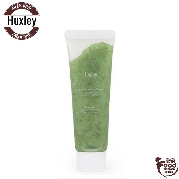 Mặt Nạ Có Hạt Giúp Tẩy Tế Bào Chết, Dưỡng Da Mịn Màng Với Chiết Xuất Từ Xương Rồng Huxley Scrub Mask Sweet Therapy 30g Xuất xứ: Hàn Quốc Thương hiệu: Huxley Dung tích: 30g *** Thế giới Skinfood là đại lý phân phối chính thức Huxley tại Việt Nam *** THÔNG TIN CHI TIẾT “HUXLEY – ĐIỀU ĐẶC BIỆT NHẤT KHÔNG ĐẾN TỪ NHỮNG VÙNG AN TOÀN!” – Huxley là thương hiệu mỹ phẩm cao cấp tại Hàn Quốc nổi tiếng với các dòng sản phẩm chăm sóc da được chiết xuất từ hạt cây xương rồng hữu cơ. Với quy trình chiết xuất khép kín, Huxley không chỉ là mỹ phẩm đơn thuần, các sản phẩm của Huxley chú trọng chữa trị tận gốc các vấn đề của da bằng cách sử dụng các thành phần đã được chứng minh là có tác dụng tốt và an toàn cho làn da. Thành phần của Huxley đạt chứng nhận của ECOCERT. *ECOCERT: là cơ quan đánh giá và chứng nhận về nông sản thiên nhiên, hữu cơ theo tiêu chuẩn công bằng và nghiêm ngặt. Nguyên liệu được chứng nhận là nông sản hữu cơ của ECOCERT phải có thành phần thiên nhiên trên 95% hoặc là thành phần thiên nhiên được sản xuất theo phương pháp được cấp phép. BẠN CÓ BIẾT, để thu thập được 1 lít dầu hạt xương rồng, các nhà nghiên cứu của HUXLEY phải bỏ ra 36 tiếng đồng hồ và nhặt nhạnh tới 1 triệu hạt xương rồng được lấy tại sa mạc Sahara? Do đó, với HUXLEY mỗi một giọt sản phẩm đều quý báu và là tinh túy dành tặng cho làn da của chính bạn. – Dành cho mọi loại da, da nhạy cảm. – Với thành phần từ thiên nhiên, cho da sáng khỏe, mịn màng: – Tinh dầu hạt xương rồng: dưỡng ẩm tối ưu, chống oxy hoá, nuôi dưỡng làn da trở nên mịn màng, sáng ngời và căng mọng. – Đường: lấy đi bụi bẩn và tạp chất. Rong biển và dưa chuột: khóa ẩm cho da. Làm dịu các nốt mụn đang bị viêm, giảm bớt hiện tượng sưng đỏ. Hạt óc chó: có tác dụng loại bỏ tế bào chết, cho lỗ chân lông không còn bị tắc bí. – Tẩy đi tế bào chết, bụi bẩn, bã nhờn đang gây bí tắc lỗ chân lông một cách rất nhẹ nhàng. – Thành phần từ Xương Rồng và Bột Óc Chó giúp cấp ẩm, bổ sung nước giúp da thêm mịn màng, tươi sáng. HƯỚNG DẪN SỬ DỤNG: Sau khi làm ướt mặt, lấy một lượng vừa đủ và massage nhẹ nhàng theo chuyển động vòng tròn để loại bỏ hết bụi bẩn, tế bào chết. Rửa sạch lại với nước ấm. – Lưu ý với những vùng da nhạy cảm xung quanh mắt