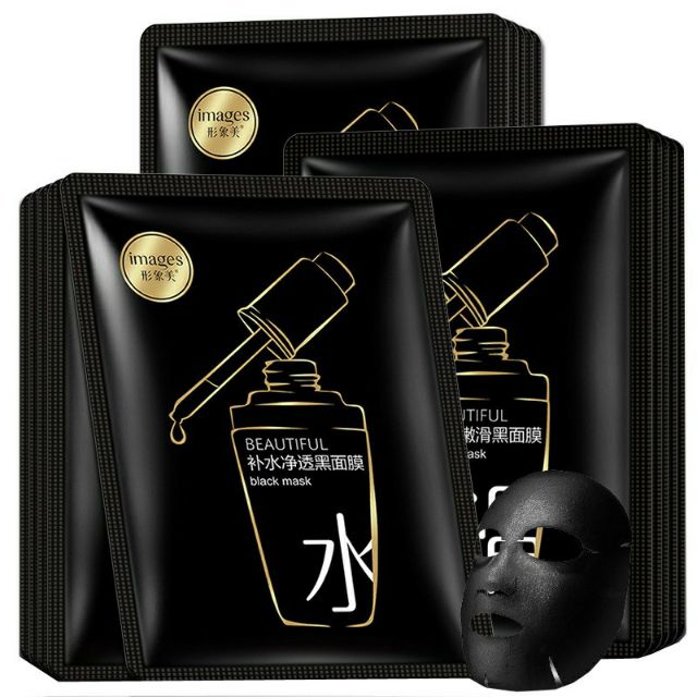 Bộ sản phẩm: Mặt nạ giấy dưỡng da mụn cấp ẩm thải độc Black mask Images.