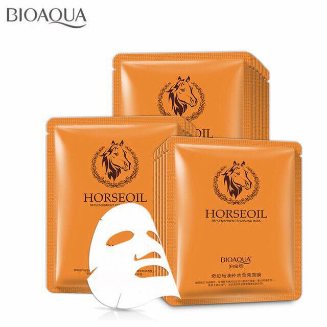 Bộ sản phẩm: Mặt nạ giấy dưỡng da mụn cấp ẩm thải độc dầu ngựa Hourse Oil Bioaqua Mask.