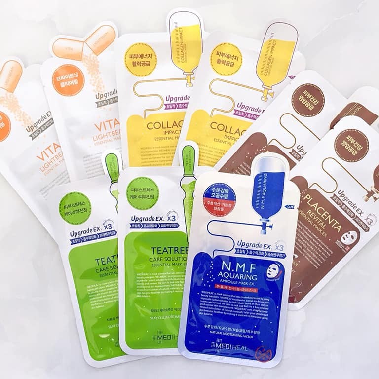 Mặt Nạ Mediheal Chính Hãng Hàn Quốc #PLACENTA REVITAL ESSENTIAL EX (25ml) Chứa những thành phần cung cấp năng lượng cho da, tăng cường độ đàn hồi và dinh dưỡng cho làn da, giúp da sáng trong hơn và khỏe mạnh hơn. Tinh chất Placenta (nhau thai) có trong mask chống lão hoá cực tốt, giúp phục hồi làn da mệt mỏi, chống lại các dấu hiệu lão hoá, làm da căng mịn và tràn đầy sức sống #VitaLightbeam Essential Mask (25ml) Chứa vitamin C, chiết xuất rễ cây dâu tằm, Arbutin. Sản phẩm có tác dụng giúp ngăn chặn sự phát triển của các sắc tố Melanin làm đen da đồng thời cải thiện được vết thâm và tàn nhang, giúp da đồng đều màu, ức chế sự hình thành melanin – sắc tố làm đen da, từ đó giúp da trắng sáng hơn #Teatree Healing Solution Essential Mask (24ml) Đem đến hiệu quả sát khuẩn cao từ tinh chất trà xanh. Sản phẩm là mặt nạ thiên nhiên nhẹ dịu, an toàn với mọi loại da. Mặt nạ sẽ giúp loại bỏ các dấu hiệu của mụn, bụi bẩn, làm sạch và mát da, đem đến cho bạn cảm giác thư giãn dễ chịu. #Collagen Impact Essential Mask (24ml) Giúp nuôi dưỡng và cung cấp sức sống, độ ẩm, mang lại vẻ tươi trẻ cho làn da sắp và đang lão hóa. Tăng sinh collagen và elastin, làm căng đầy và trẻ hóa tế bào, mô da. Điều trị, cải thiện kết cấu và làm mờ nếp nhăn, giúp làn da mịn màng, tràn đầy sức sống. #maskmediheal