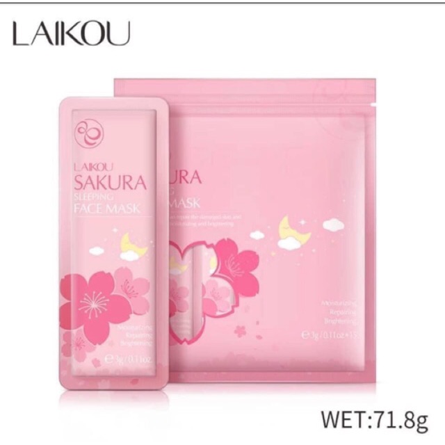 ❌❌SIÊU PHẨM MỚI HỒNG MỘNG MƠ DÀNH CHO DA BỊ MỤN ẨN – DA KHÔNG ĐỀU MÀU ✨✨Mặt nạ ngủ LAIKOU SAKURA. EF ✨✨ Màu hồng ưng quá ️ ️ Dưỡng ẩm, trắng da, tái tạo da. Giúp đẩy mụn ẩn nhẹ nhàng nữa Mấy ngày nổi mụn đắp cái này mụn mau chín lắm , dễ lấy cồi hơn hẳn. Đắp xong mặt rất sạch mà da rất mịn màng, giảm dầu hẳn luôn đấy ạ Chất mặt nạ gel sữa nhanh thấm không gây bí da, chứa chiết xuất hoa anh đào, tảo biển, hyaluronic acid, men gạo, vitamin C, táo, mơ… Nuôi dưỡng, làm mềm mịn, sáng da đồng thời giúp dịu da, dưỡng ẩm cho da độ ẩm cần thiết, giúp phục hồi da sáng mịn như cánh hoa anh đào. Giá: 80.000/ túi to (15 gói nhỏ bên trong) (có 5k mấy 1 gói nhỏ) xài cả tháng trởi Hướng_Dẫn_Sử_Dụng: •Thực hiện tất cả các bước chăm dưỡng da thông thường, dùng một lượng vừa đủ thoa đều nhẹ nhàng lên toàn bộ khuôn mặt. •Chờ một lúc cho mặt nạ khô hoàn toàn là bạn có thể đi ngủ. •Để nguyên mặt nạ ngủ qua đêm và sau khi thức dậy vào buổi sáng, hãy rửa sạch mặt bằng nước ấm rồi sau đó rửa lại với nước lạnh nếu da khô. •Còn đối với da dầu, bạn có thể rửa mặt bình thường với các loại sữa rửa mặt dịu nhẹ.