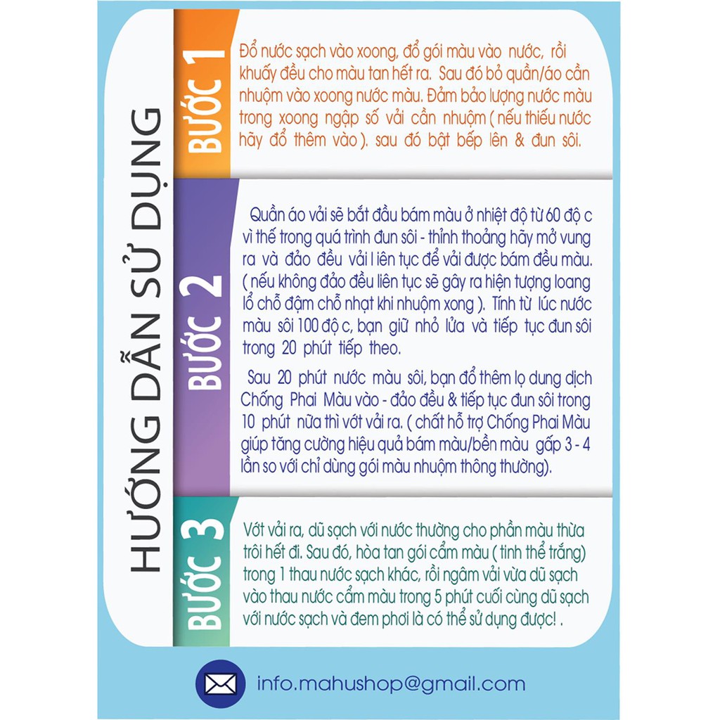 Trên đây là toàn bộ thông tin về sản phẩm Màu nhuộm Quần Áo mà shop giới thiệu, hy vọng sẽ làm hài lòng quý khách.