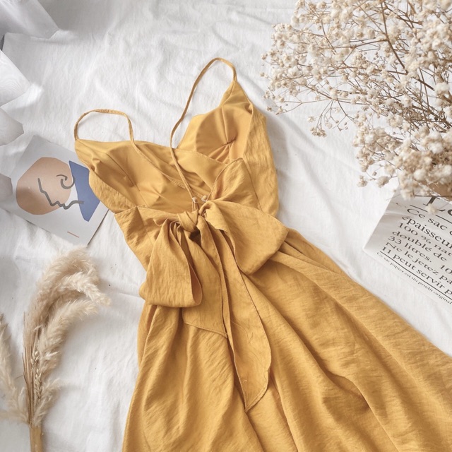Bộ sản phẩm: Maxi vàngĐầm Maxi vàng nơ lưng.
