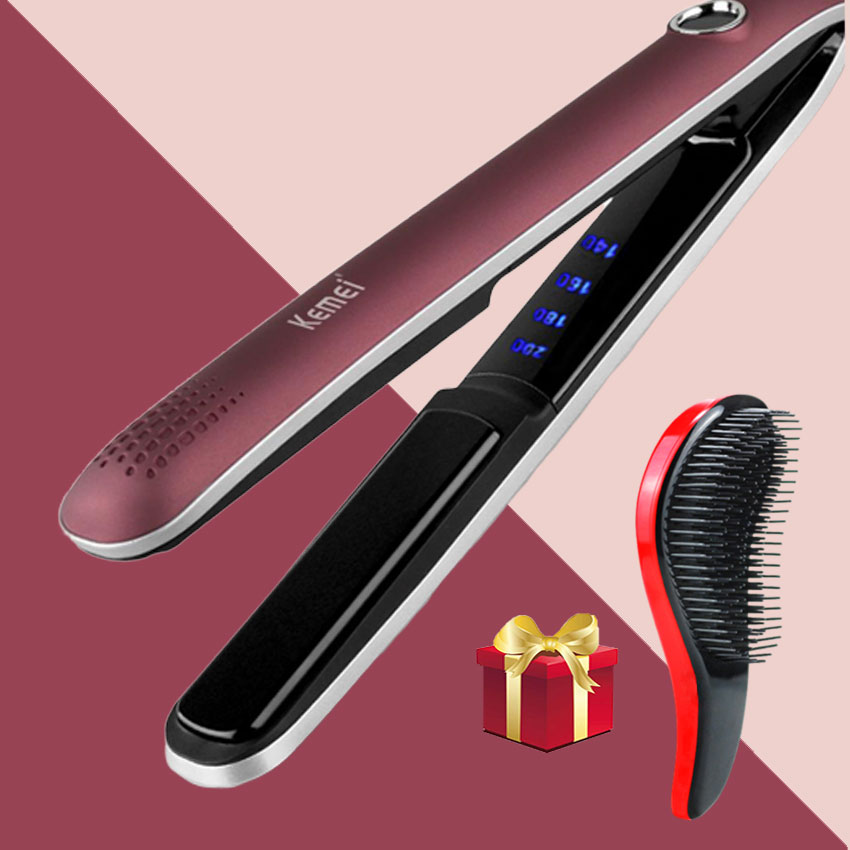 Bộ sản phẩm Máy duỗi tóc cao cấp Kemei KM-2203 điều chỉnh 4 mức nhiệt độ có màn hình LCD hiển thị TẶNG kèm lược chải tóc rối tiện lợi (Màu ngẫu nhiên) Thương hiệu: Kemei.