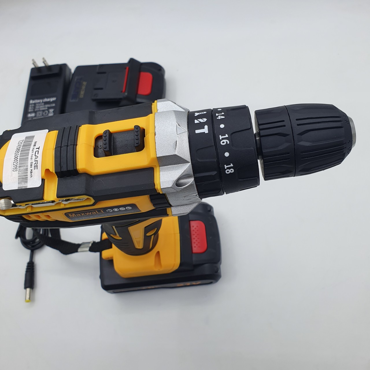 Bộ sản phẩm Máy Khoan Pin 21V sửa chữa, khoan tường gạch sắt gỗ bắn vặn vít Tcare T21V – Hàng chính hãng, Thương hiệu tcare Xuất xứ thương hiệu Việt Nam Model T21V Kích thước 32x28x8CM Xuất xứ Trung Quốc SKU 9175855735382.
