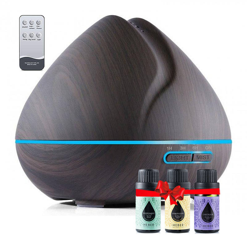Bộ sản phẩm Máy Khuếch Tán Tinh Dầu 500ml Tặng 3 Chai Sả Chanh + Bạc Hà + Oải Hương 10ml Nhập Khẩu Ấn Độ | Xông Phòng 30m2 | Kèm Remote Điều Khiển | MKT20 Búp Sen Đen, .