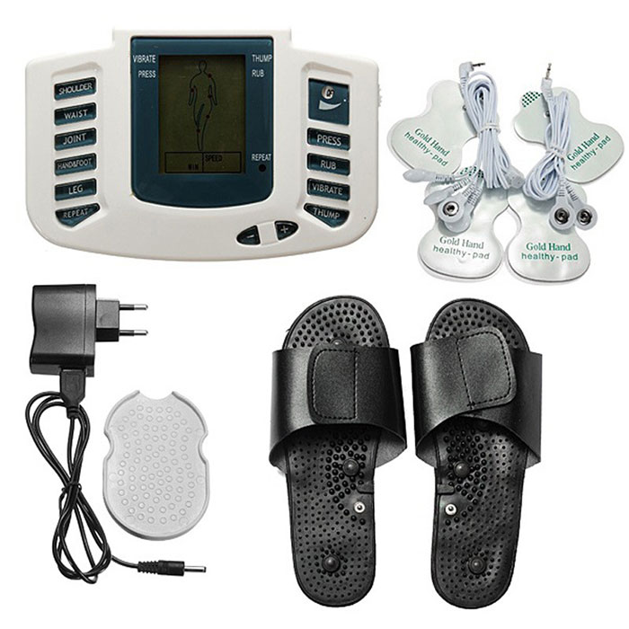 Kỹ thuật số kinh tuyến vật lý trị liệu massage với 6 miếng dán Công nghệ hiện đại và TCM trị liệu kết hợp 6 chương trình massage và 10 cường độ massage từ nhẹ đến mạnh. 4 chế độ: rung, đập Shiatsu, Massage và trị liệu. 6 miếng dán điện cực và 1 đôi dép massage chân trị liệu đôi chân 3 nguồn cung cấp điện: Pin AA, cáp USB kết nối nguồn điện máy tính, nguồn điện trực tiếp AC Máy massage xung điện 6 miếng điện cực và trị liệu đôi chân được sản xuất theo công nghệ mới áp dụng kinh tuyến kỹ thuật số vật lý trị liệu massage, các xung điện tử thúc đẩy lưu thông máu, làm giảm đau và thúc đẩy sự trao đổi chất của cơ thể một cách hiệu quả. Máy được thiết lập với chế độ massage và cường độ massage đa dạng nhằm mang đến hiệu quả tốt nhất. Thiết kế nhỏ gọn, nguồn cung cấp điện linh hoạt giúp người dùng tiện mang theo khi đi du lịch hay công tác. Bên cạnh đó máy còn được trang bị nhiều tính năng ưu việt nhằm mang đến sự tiện lợi cho người dùng. Đây là sản phẩm chăm sóc sức khỏe chất lượng cao được các chuyên gia khuyên dùng. Đặc điểm nổi bật của Máy massage xung điện 6 miếng điện cực và trị liệu bàn chân: Kỹ thuật số kinh tuyến vật lý trị liệu massage Công nghệ hiện đại và TCM trị liệu kết hợp 6 chương trình massage và 10 cường độ massage từ nhẹ đến mạnh. 4 chế độ: rung, đập Shiatsu, Massage và trị liệu. 6 miếng dán điện cực và 1 dép massage chân trị liệu 3 nguồn cung cấp điện: Pin AA, cáp USB kết nối nguồn điện máy tính, nguồn điện trực tiếp AC. Ưu điểm của Máy massage xung điện 6 miếng điện cực và trị liệu dép: Công nghệ hiện đại Máy massage xung điện trị liệu áp dụng công nghệ hiện đại TCM trị liệu kết hợp, kỹ thuật số kinh tuyến vật lý trị liệu massage. Các xung điện tử thúc đẩy lưu thông máu, làm giảm đau, giảm mệt mỏi, thư giãn cơ bắp, đốt cháy chất béo và thúc đẩy sự trao đổi chất mang lại hiệu quả tối ưu cho sức khỏe người dùng. Chương trình massage đa dạng Máy massage điện xung được thiết lập 6 chương trình massage với 10 cường độ massage từ nhẹ đến mạnh, người dùng có thể lựa chọn chương trình massage và điều chỉnh cường độ massage ở mức độ thích hợp với cơ thể. Bên cạnh đó máy còn có 4 chế độ massage là rung, đập Shiatsu, Massage và Cạo trị liệu để mang lại hiệu quả tối ưu nhất cho quá trình massage. Nguôn cấp điện linh hoạt Máy massage trị liệu sử dụng nguồn điện linh hoạt, cho phép 3 nguồn cung cấp điện là pin AA, cáp USB kết nối nguồn điện máy tính, nguồn điện trực tiếp AC. Tính năng này mang lại sự tiện dụng tuyệt đối cho người dùng. Bạn có thể mang theo khi đi du lịch hay công tác để chăm sóc cơ thể mà không lo hết pin hay cúp điện. Dép massage chân trị liệu Máy massage điệm xung thiết kế với 6 miếng điện cực giúp người dùng có thể massage đồng thời nhiều vị trí trên cơ thể. Bên cạnh đó máy còn trang bị 1 đôi dép massage trị liệu điện xung cho lòng bàn chân vô cùng tiện ích. Bạn chỉ cần cấm diện cực vào dép, mang vào chân và kích hoạt là có thể massage bấm huyệt cho đôi chân vô cùng tiện ích. Thiết kế thông minh và tiện ích Máy mát xa trị liệu được thiết kế với màn hình kỹ thuật số hiển thị kết quả dễ quan sát, cùng 13 nút điều chỉnh chế độ bằng cơ đơn giản dễ sử dụng, tiện íc cho những người mới biết sử dụng. Lưu ý khi sử dụng: Hãy tháo pin ra nếu sản phẩm không sử dụng trong một thời gian dài. Không áp dụng miếng điện cực vào da của bạn với nguồn điện, nếu không nó có thể dẫn đến cú sốc đột ngột Không di chuyển miếng điện cực đến phần khác của cơ thể hoặc cơ thể người khác trước khi tắt điện Nếu bạn cảm thấy bất thường ở cơ thể bạn, hãy dừng sử dụng sản phẩm ngay Không sử dụng thiết bị trong phòng có độ ẩm cao hoặc khi tắm hoặc ngủ Không sử dụng cho phụ nữ mang thai và trên các vết thương hỡ. Thông số kỹ thuật sản phẩm máy massage xung điện 6 miếng dán kèm dép massage chân: – Sử dụng 3×1.5 V pin AA hoặc bột adapter hoặc cổng USB có thể sử dụng máy tính hoặc cốc sạc. – Tần số: 1-50Hz – Thời gian hẹn giờ: 15 phút – Kích thước máy: 15x10x5 cm – Kích thước hộp: 30x26x7cm – Máy gồm có các bộ phụ kiện sau: 1 máy chính, 6 miếng dán, 1 dây tín hiệu 4 cực và 1 dây 2 cực, 1 dây nguồn, hướng dẫn sử dụng, 1 đế lót miếng dán
