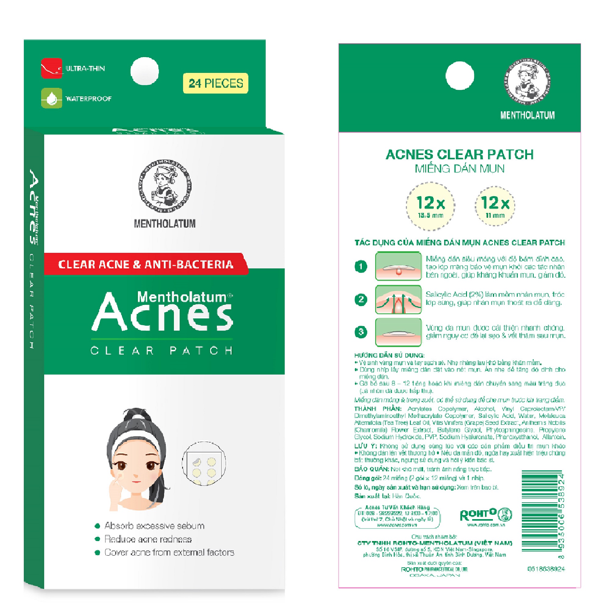 Bộ sản phẩm Miếng dán mụn Acnes Clear Patch (24 miếng) Thương hiệu: Acnes.