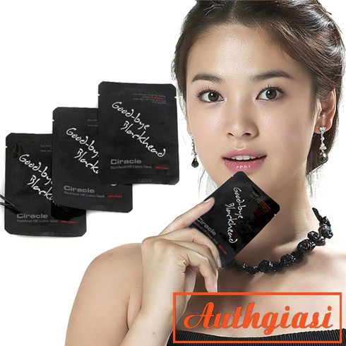 Miếng đẩy mụn Goodbye Blackhead hiệu quả (kèm que nặn và gạt) Xuất xứ: Hàn Quốc Hãng sản xuất: Ciracle Quy cách: Gói 5ml 1. Mô tả: – “Bạn sẽ cảm nhận được hiệu quả thần kì chỉ trong 15 phút. Da bạn sẽ trở nên mềm mại và sạch sẽ” – Miếng mặt nạ đẩy mụn đầu đen Ciracle Goodbye Blackhead đặc biệt không gây đau rát, khó chịu, không làm to lỗ chân lông như các loại lột mụn thông thường, Goodbye Blackhead thực chất là 1 miếng bông dày, mềm mại thấm đầm serum, bạn chỉ cần đắp lên mũi (má, cằm) như đắp 1 miếng mặt nạ. – Mỗi gói Goodbye Blackhead Ciracle đều có: + Một miếng bông rất dày được thiết kế phù hợp với việc đặt vừa vặn lên mũi, nhìn giống như miếng lột mụn thông thường nhưng điểm khác biệt là, các miếng lột mụn thường có 1 mặt là chất keo hơi dính, sẽ dính chặt vào mũi sau đó bạn sẽ phải nhăn mặt vì đau khi gỡ nó ra. Nhưng Goodbye Blackhead lại là bông hoàn toàn, thấm đẫm serum, rất mềm và ẩm, bạn chỉ việc nhẹ nhàng đắp vào, nhẹ nhàng gỡ ra, không 1 tý đau đớn nào. Đợi khoảng 30-40 phút rồi gỡ ra, bạn sẽ rất ngạc nhiên vì các nhân mụn lúc này đã được đẩy hết lên bề mặt da rồi. Bạn chỉ cần dùng tăm bông nhẹ nhang gạt phần mụn đi là xong… mũi, trán, má, cằm hoàn toàn sạch bong và mịn màng nhé. + Một que nặn và gạt mụn có thiết kế 2 đầu rất thú vị: đầu dẹt có lỗ để ấn nặn mụn và đầu tròn để gạt mụn. 2. Công dụng chính: – Giải quyết được 80-90% vấn đề mụn đầu đen trên mũi. – Không gây tổn hại đến bề mặt da nhờ cơ chế serum thấm vào các lỗ chân lông, phá hủy keo liên kết của mụn đầu đen khiến chúng bong ra từ gốc để chúng ta dễ dàng nặn mụn. – Dưỡng ấm cho vùng da sau khi sử dụng tốt, kiểu bóng bóng như mũi sao Hàn. – Lúc bóc em ý ra không hề gây đau rát. – Ngoài mụn đầu đen thì em ý còn đánh bay được cả các loại mụn cám li ti nữa. Sau khi đắp lên những vùng có mụn cám, bạn cũng dùng que gạt phần mụn đi 1 cách dễ dàng như đối với mụn đầu đen vậy. – Tất cả mọi người đều có thể dùng, đặc biệt có thể đắp cùng bạn trai. 3. Phân loại: – Follow Shop: Dành cho khách THEO DÕI SHOP, chỉ 1 lần bấm giá sẽ được ưu đãi nhiều lần. Trường hợp này nếu bạn ko bấm Follow Shop, sản phẩm sẽ ko được gửi đi (Shop sẽ bù tiền vào trong gói hàng ạ). – Ko Follow Shop: Dành cho khách KO THEO DÕI SHOP. 4. Hướng dẫn sử dụng: – Nên rửa mặt sạch,xông mặt bằng nước ấm càng tốt (có thể lấy bông tẩy trang thấm nước nóng ấm đắp vào vùng mũi 3-4′) để mềm lỗ chân lông dễ ra mụn đầu đen hơn. – Nhẹ nhàng xé gói Goodbye Blackhead Ciracle, lấy miếng bông ra và đắp lên mũi. 1 miếng bông rất dày, bạn có thể tách ra làm đôi để đắp thêm xuống cằm, má, hoặc trán (nơi có nhiều mụn cám) vì không chỉ mụn đầu đen mà em ý còn có tác dụng với cả mụn cám nữa cơ. – Để khoảng 40 phút sẽ mang lại hiệu quả tốt nhất. – Sau đó gỡ miếng bông ra rồi dùng đầu nặn mụn ấn nhẹ nhàng lên vùng da trên mũi sẽ thấy mụn đầu đen trồi lên một cách kinh hoàng và thú vị. Sau đó lấy đầu bông để gạt chúng đi. – Rửa lại mặt bằng nước thật lạnh và bôi toner, nước hoa hồng lên phần mũi để se khít lỗ chân lông.