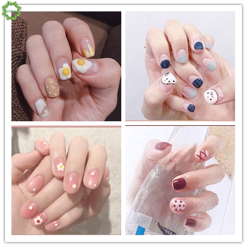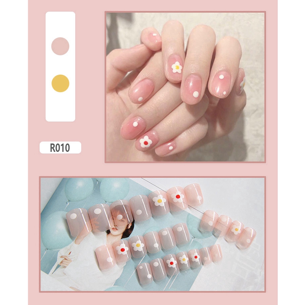 Bộ sản phẩm: Móng tay giả chống thấm nước phong cách Hàn Quốc đơn giản dán trang trí tự làm.
