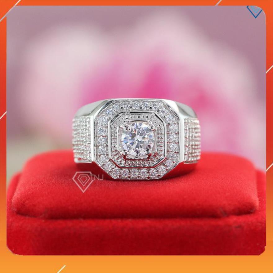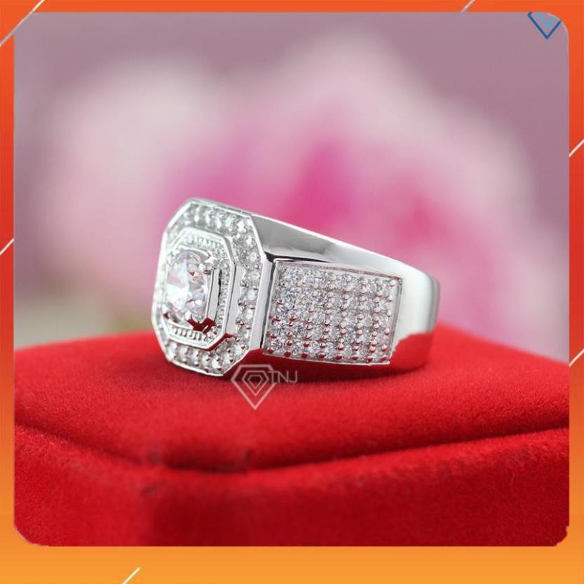 Bộ sản phẩm: Nhẫn bạc nam bản to đính đá đẹp sang trọng NNA0064 – Trang Sức TNJ.