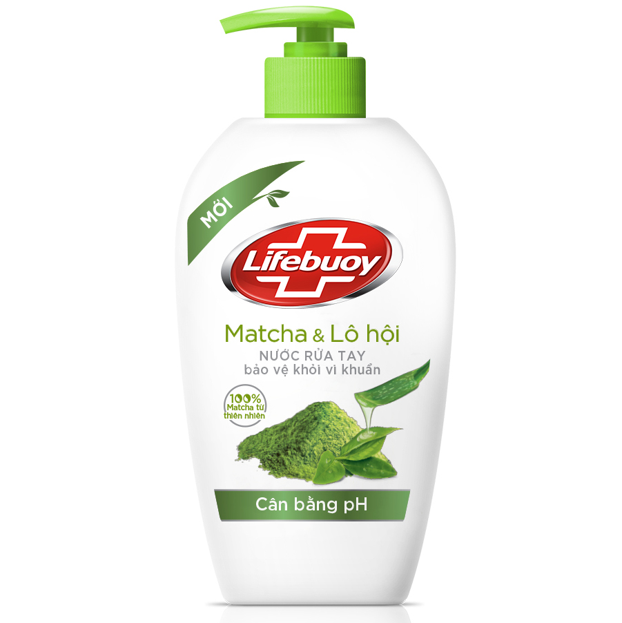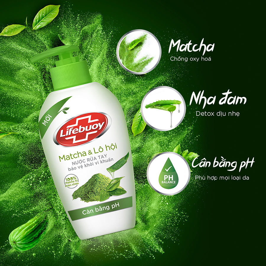 Nhãn hiệu sạch khuẩn số 1 thế giới Thành phần từ thiên nhiên Công thức cân bằng pH chứa ion bạc Sạch khuẩn trong 10 giây Hiệu quả bảo vệ suốt cả ngày và chăm sóc da dịu nhẹ Nước Rửa Tay Cân Bằng pH Lifebuoy Matcha Và Nha Đam (500g) Trẻ em vô cùng hiếu động, bé sẽ thường xuyên tiếp xúc với vi khuẩn gây bệnh. Vì vậy, việc rửa tay trước khi ăn và sau khi đi vệ sinh rất quan trọng trong việc bảo vệ trẻ. Với xà phòng rửa tay thông thường, cần rửa tay trong 1 phút để tiêu diệt hoàn toàn vi khuẩn, và các bạn nhỏ hiếu động chẳng thích thú gì điều này. Hiểu được điều ấy, Lifebuoy cho ra đời nước rửa tay Lifebuoy Matcha và Lô hội mới, với công thức cân bằng pH chứa ion bạc và hai thành phần từ thiên nhiên 100% gồm Matcha chống oxy hóa và Lô hội dưỡng dịu nhẹ, không chỉ sạch vi khuẩn hiệu quả trong 10 giây mà còn chăm sóc nhẹ nhàng cho da.