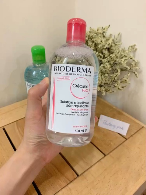 Bộ sản phẩm: Nước Tẩy Trang Bioderma H2O 500ml Créaline Hồng, Sébium Xanh .