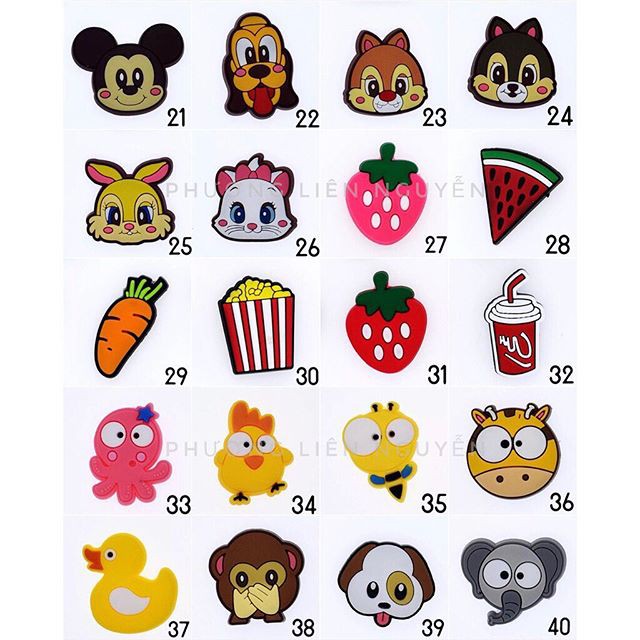 Chi tiết các thông sỗ kĩ thuật kèm hình ảnh của bộ sản phẩm Nút cài dép Sticker Jibbitz 2D gắn trang trí dép crocs, sục duet, quý khách xem dưới đây: