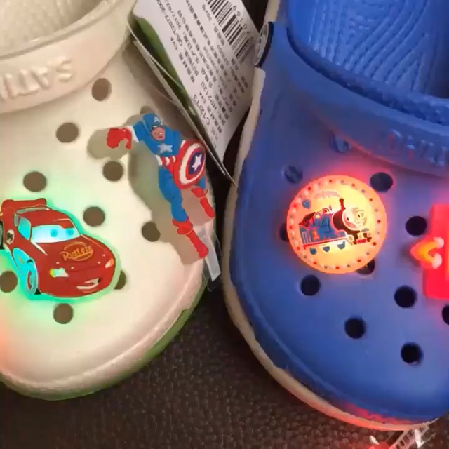 Bộ sản phẩm: Nút cài dép Sticker Jibbitz Charm 3D ĐÈN LED.