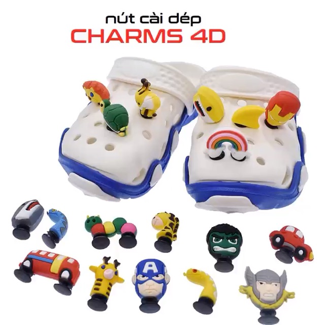 Bộ sản phẩm: Nút cài dép Sticker Jibbitz Charm 4D cho sục bít đầu.