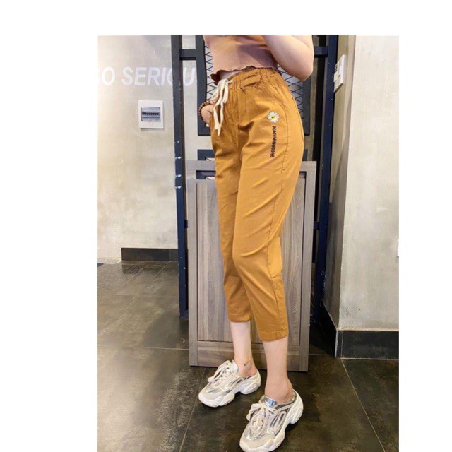 Bộ sản phẩm: Quần baggy đũi thô thêu hoa cúc dáng lỡ hót hít.