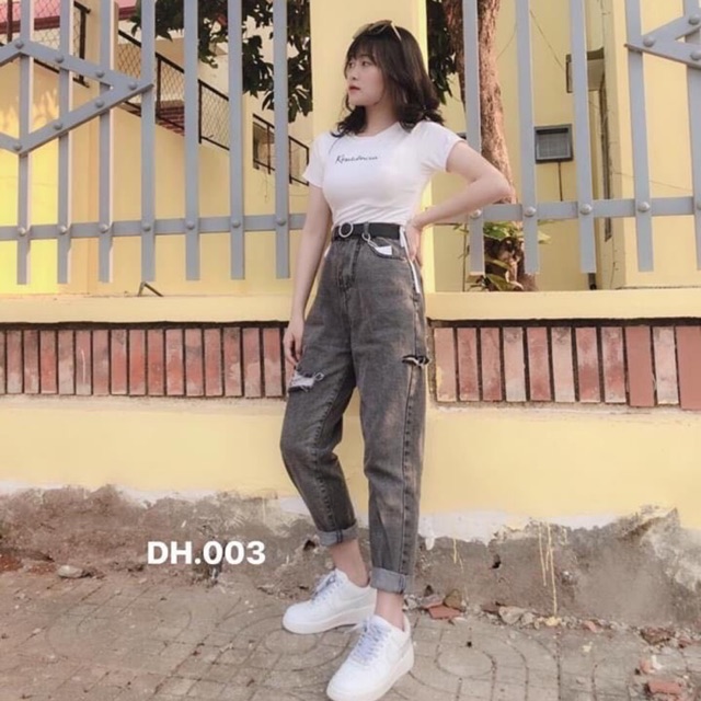 Bộ sản phẩm: Quần bagy bò khói rách mã 003 DH12.